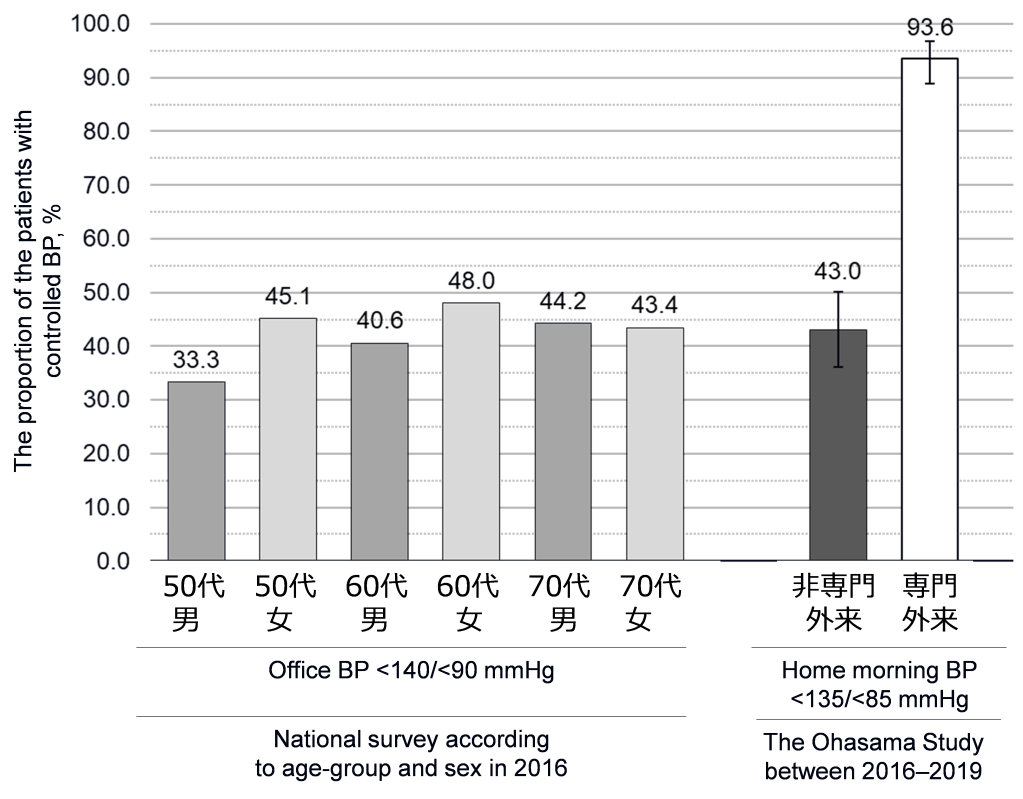 高血圧専門外来では家庭血圧に基づく診療により、優れた血圧コントロールが達成されていた。日本のガイドラインで推奨される家庭血圧に基づく高血圧診療が、良好な血圧管理の鍵となることが示唆された。